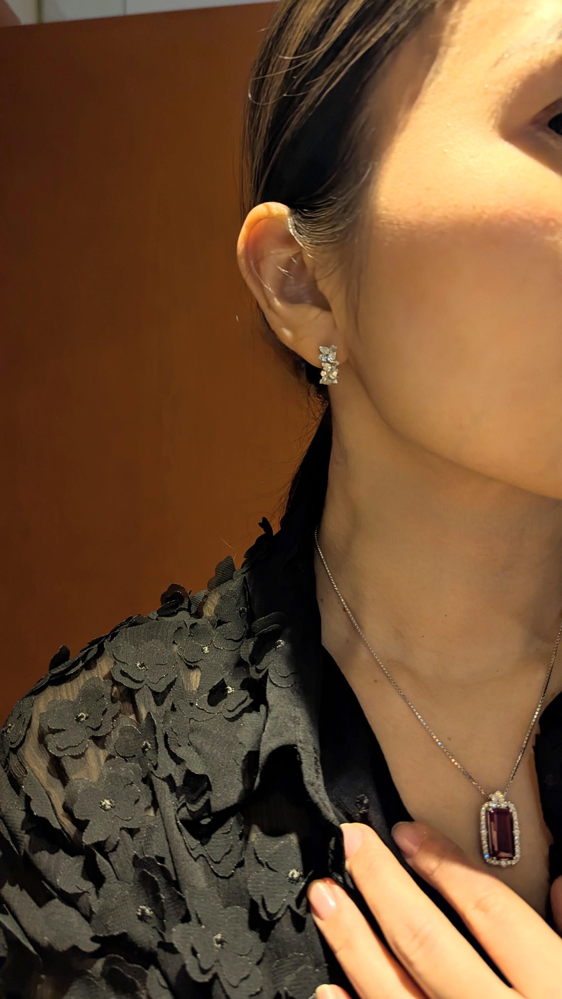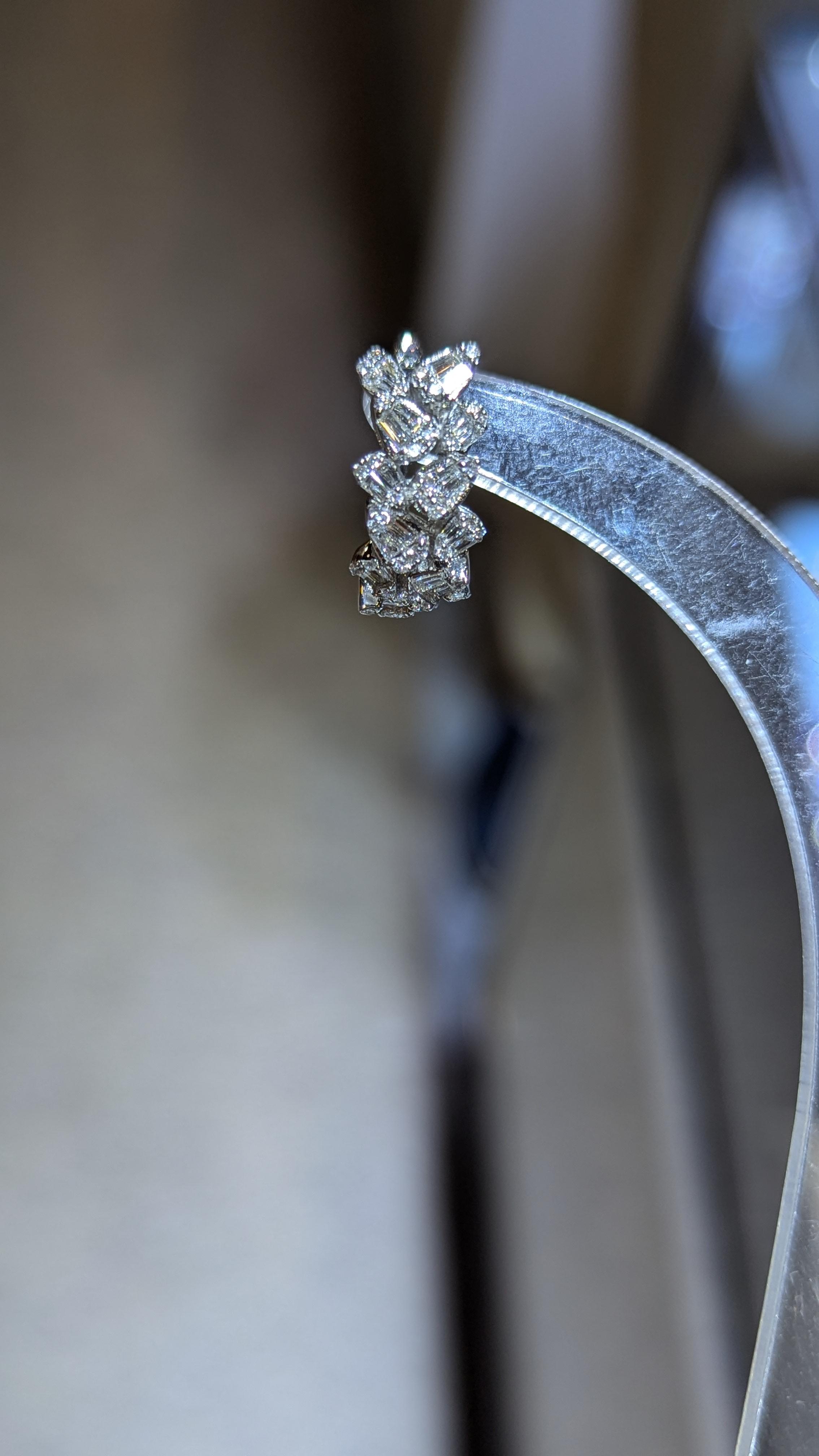 ダイヤのカラーは上からD・E・F~とカラーグレードが定められており、ハイブランドなどでも基準としているところが多いFカラー以上のカラーレスグレードのものを使用しております。クラリティ(内包物などの基準)はVSクラス以上。見た目にもうるうると美しいテリのよいダイヤモンドを120ピース留めたピアスです。実際にご購入下さったお客様からはお喜びの声を頂いております。